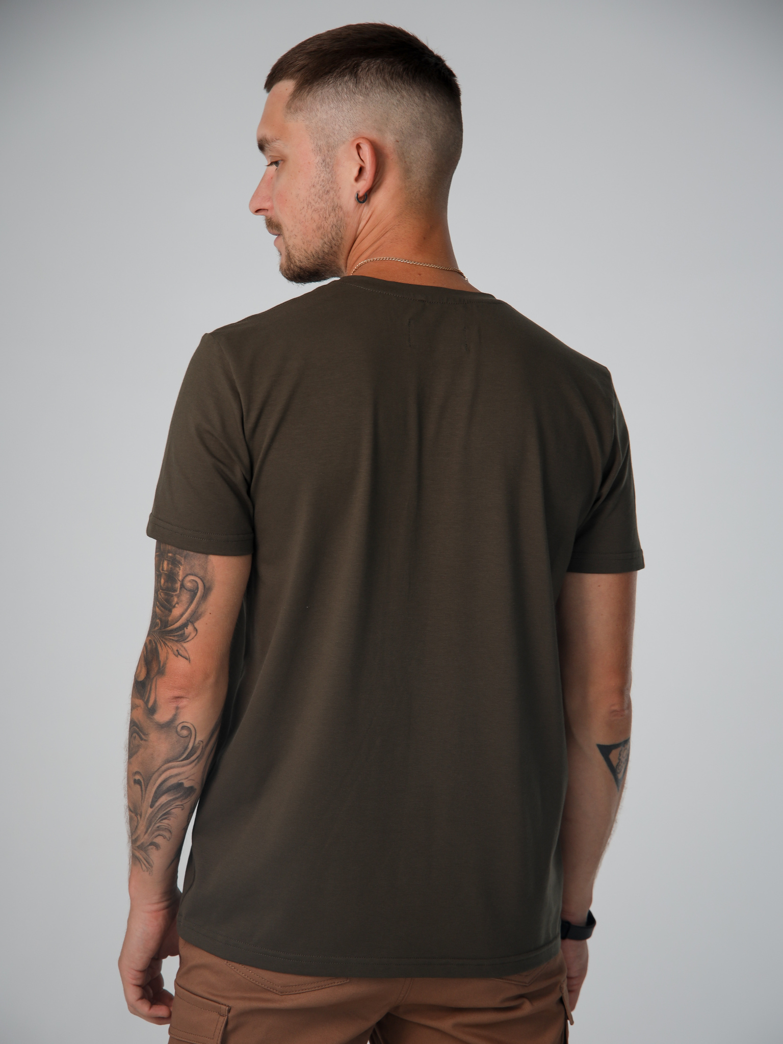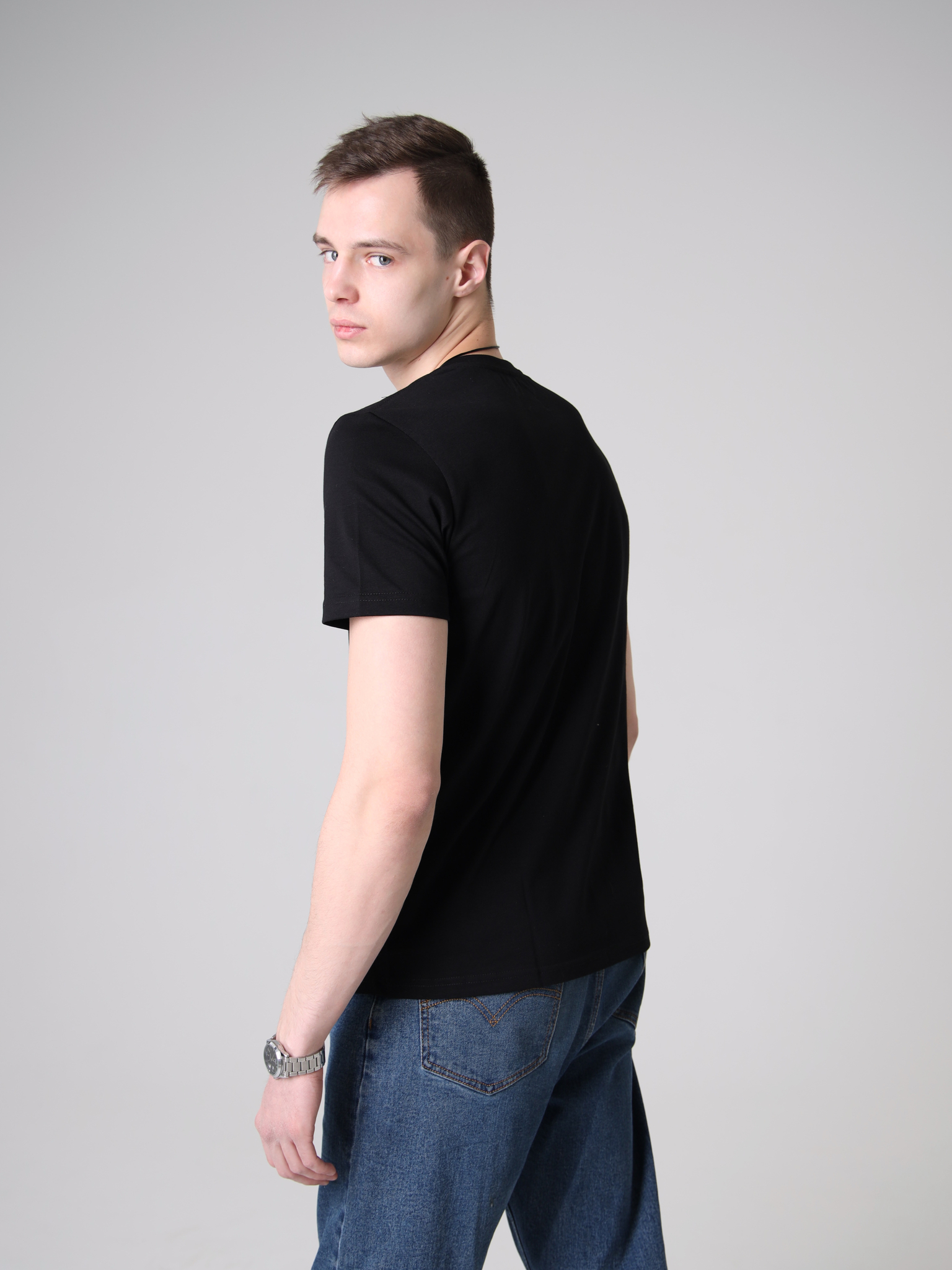 Футболка имеет прямой классический крой — не облегает и не мешковат. Если вы предпочитаете оверсайз, достаточно взять на размер больше. Модель представлена в нескольких цветах, которые легко комбинируются с любым низом: джинсами, брюками карго, шортами, спортивными штанами.